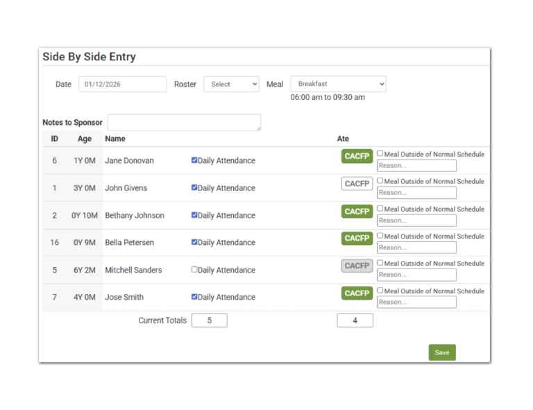 Take a closer look at our software! Explore a selection of screenshots and sample reports that showcase the customizable features and user-friendly interface designed to make managing the CACFP easier. Whether you’re curious about specific functionalities or want a preview of how our software can work for you, this page provides a sample of what you can expect. Take a look around and see how our customizable software can help you manage the CACFP.